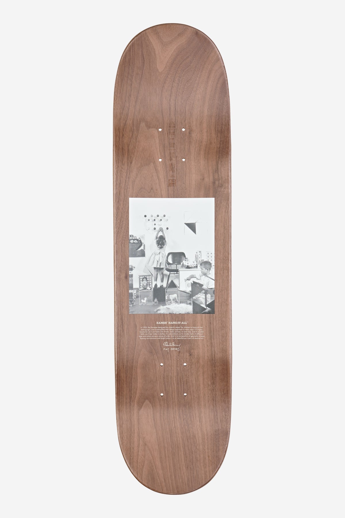 Specialty Walnut veneer decks featuring iconic art extending the legacy of Charles and Ray Eames. The Eames Silhouette 8.25 in Hang-It-All features Full concave and is constructed from Walnut + Resin-7 Canadian maple. The top of this 8.25” walnut and Canadian maple deck features the story behind the Eames “Hang-It-All”, designed by Charles & Ray Eames, 1953. These decks are individually boxed, and include wall hangers for easy mounting.
