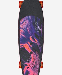 Surf-inspired swallow-tail cruiser. The Sun City in Reishi features Resin-7 hard rock maple deck construction with mellow concave and kick tail. Also features 5.25” Tensor alloy trucks and 62mm 78a conical cruiser wheels for a smooth ride.